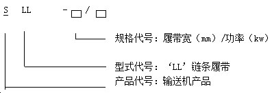 標(biāo)記示例:SLL-1000/2.2型,表示履帶寬度為1000mm、功率為2.2kw的鏈條履帶提升機(jī)。