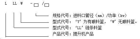 標記示例:LLLY-700/2.2型,表示進料口管徑為700mm、有眼料籃的鏈條料籃提升機,電機功率2.2kw。